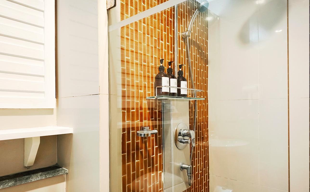 - Bathroom with shower and toilet