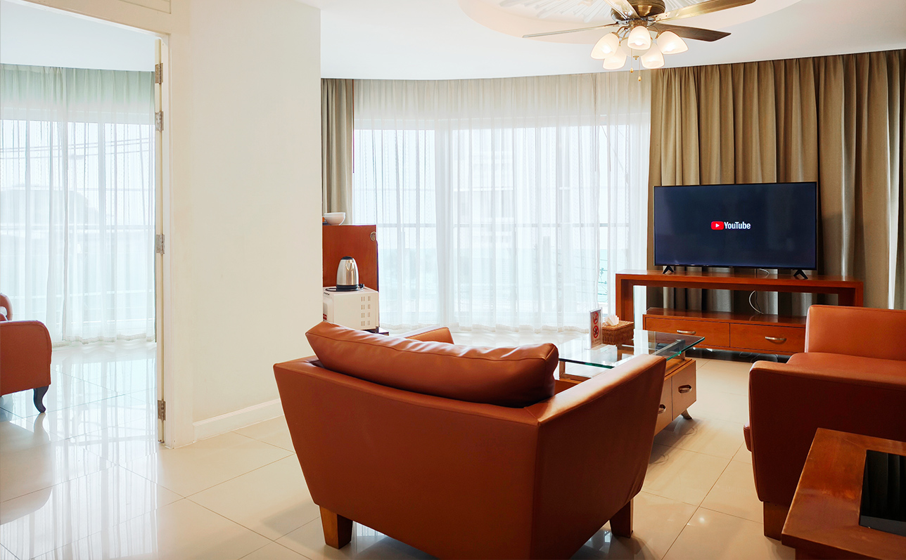 Apart from being the perfect suite for that relaxing getaway, the Two Bedroom Ocean View Suite is as well the perfect place for an extended staycation or even a long-term rental. Get in contact with our Sales team for special offers for your extended stay at the Royal Beach View Pattaya.